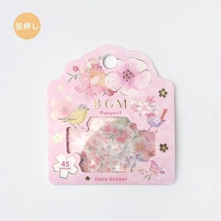 優しい雰囲気の花や鳥がほんわかと可愛らしいシールです。