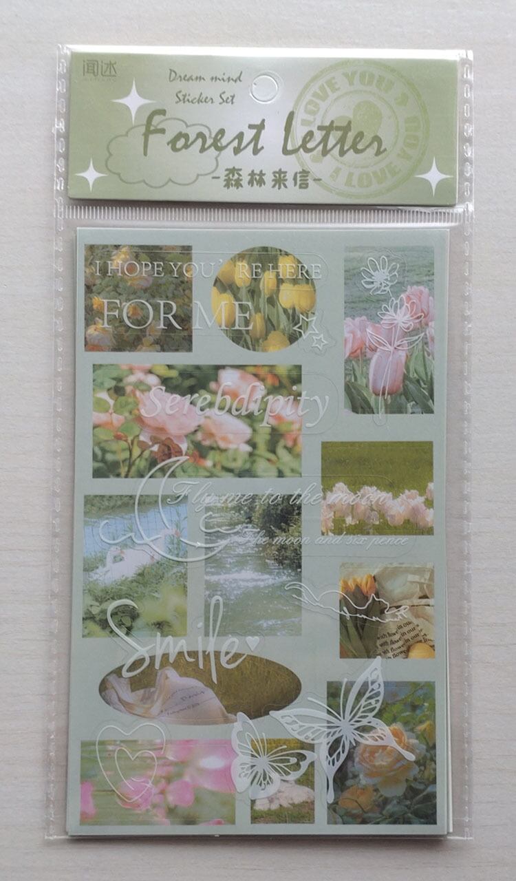 PET素材のシール4枚と紙素材のシール2枚がセットになっていて色々な組み合わせでコラージュやノートなどのデコレーションにお使いいただけます。