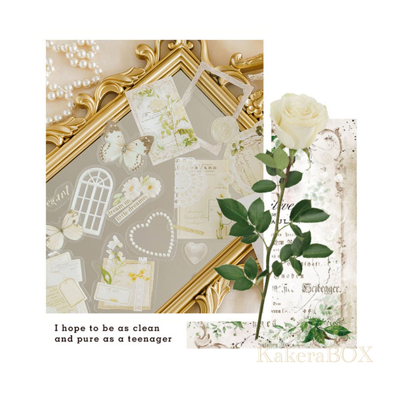 すりガラスのような半透明なPET素材シールで、絵柄の部分はつや消し加工で上品な雰囲気です。